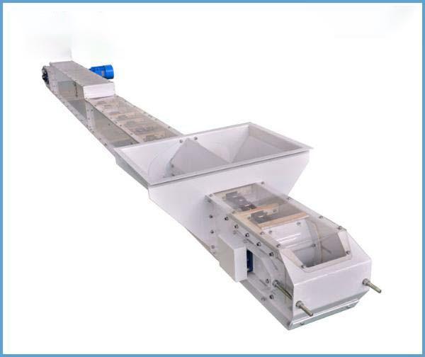 平滑的导轨、有自清功能的刮板,确保了设备运转平稳,物料残留少。 卸料门可装置在任何位置,并可手动、气动或电动控制,实现多点卸 料,卸料干净彻底,无残留。 带有刮板链条张紧检测装置,确保设备运行正常。 机尾为浮动可调结构,并设有尾端积料自动清理装置,消除残留。